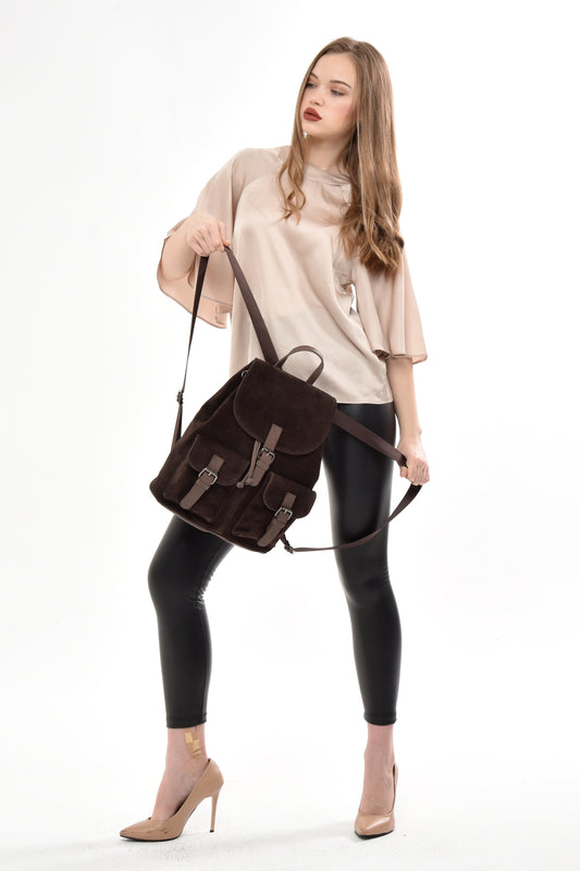 Hakiki Süet Deri Kadın Sırt Çantası YC040737HSD