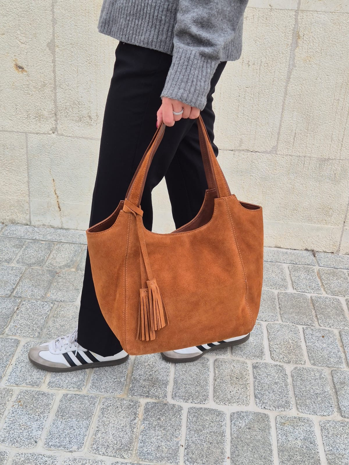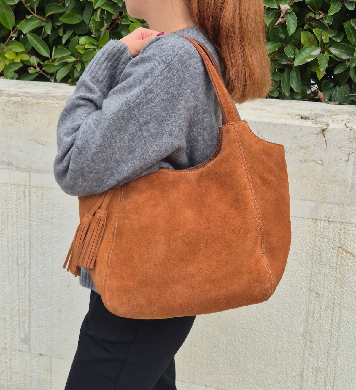 Hakiki süet deri kullanılarak üretilmiş, uzun ömürlü ve dayanıklı bir yapıya sahiptir. Casual/günlük ortamlarda rahatlıkla tercih edilebilecek pratiklikte tasarlanmıştır.Ürünün ölçüleri: Genişlik 42 x Yükseklik 28 x Derinlik 20 cm'dir.Ürünün içerisinde bir adet fermuarlı cep ve bir adet telefon cebi bulunmaktadır.