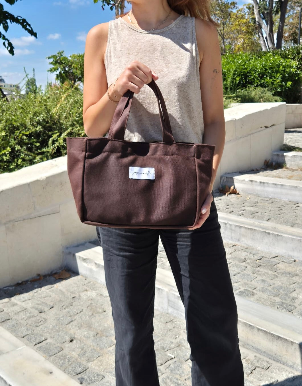 %100 mumlu pamuklu kanvas kumaştan üretilmiştir, su geçirmezdir. Uzun sapı bulunmaktadır hem omuzda hem elde kullanılabilmektedir.İçerisinde bir adet fermuarlı cep bulunmaktadır. Ölçüleri: Yükseklik:22xGenişlik:31xDerinlik:12cm’dir.